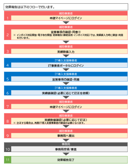 ①インボイス対応状況およびITツールを継続的に活用しているということを効果報告期間内に報告すること